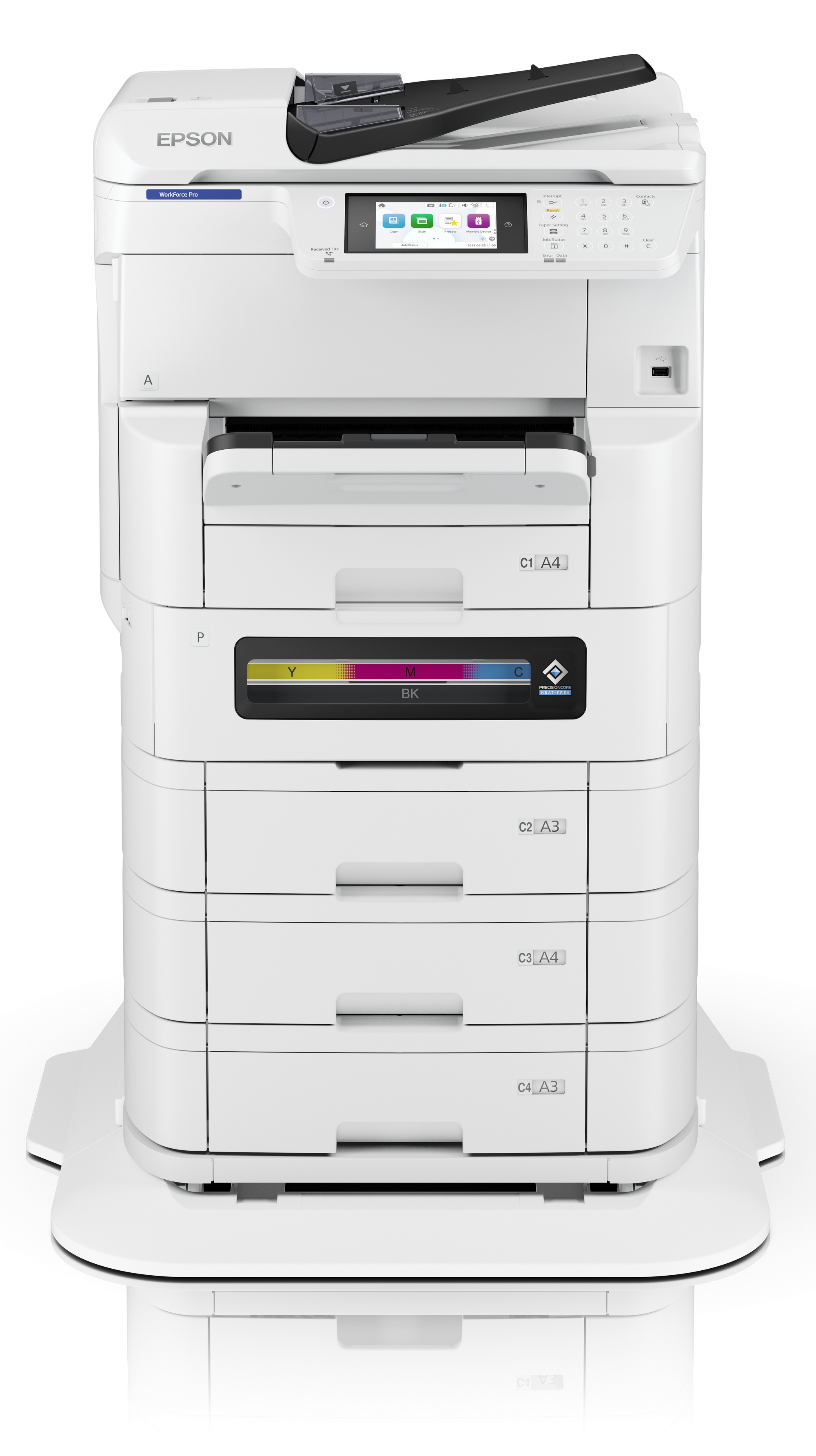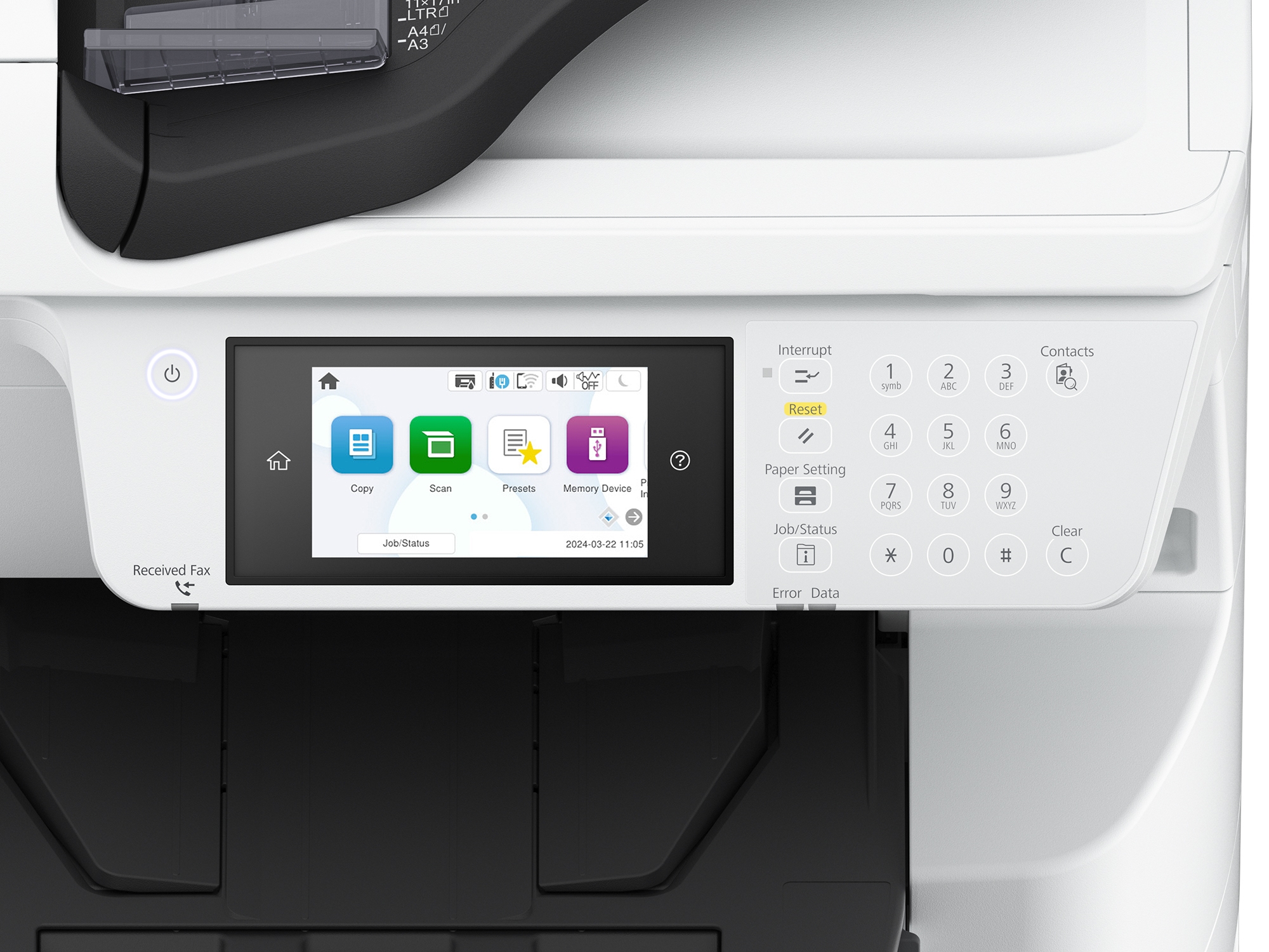 Der WorkForce Pro EM-C8100RDWF überzeugt mit einem intuitiven 12,7 cm Farb-Touchdisplay und umfangreichen Mobil- und Cloud-Druckfunktionen wie Apple AirPrint, Mopria und Epson iPrint.